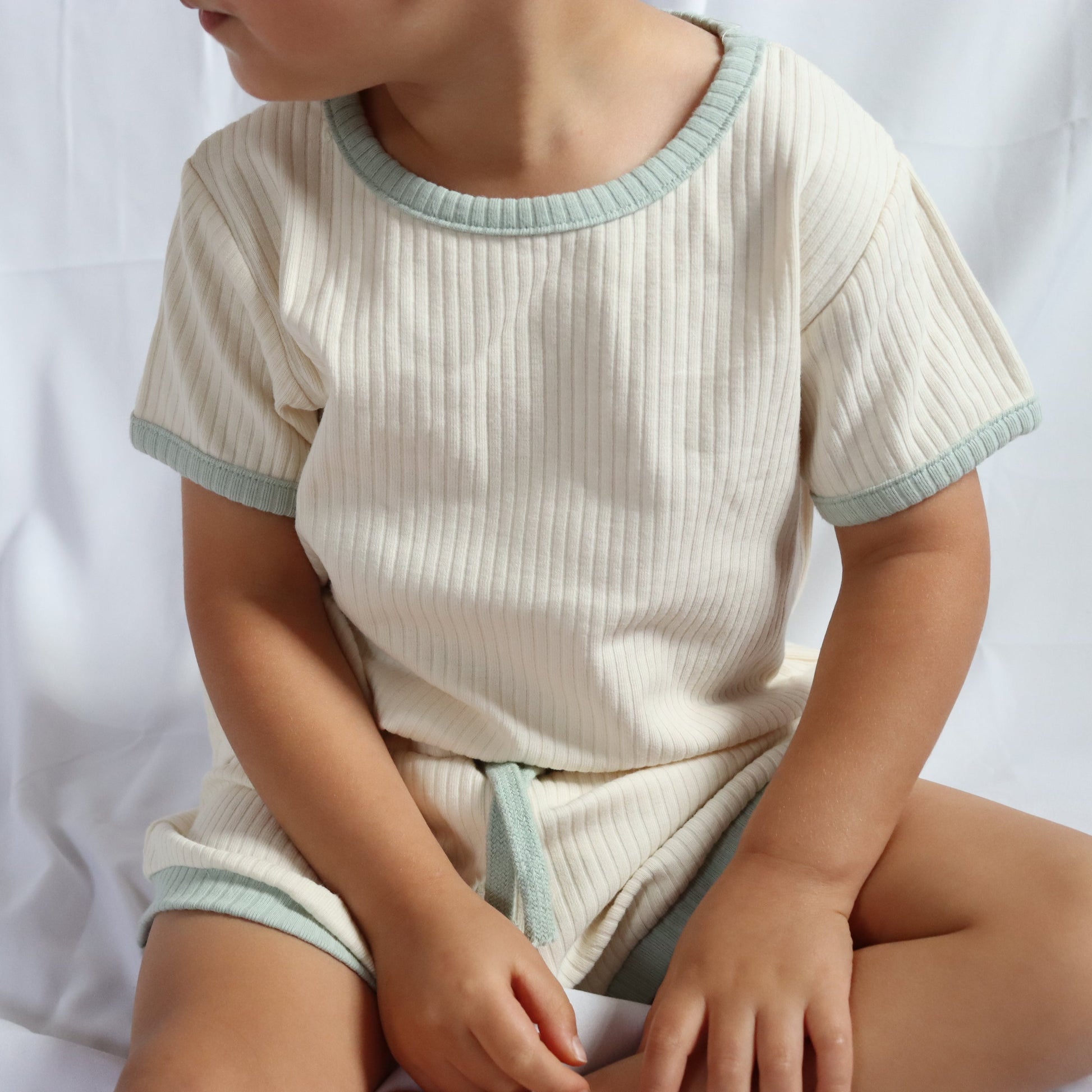 The Coastal Cream Set celebrates simplicity with its creamy base and classic design — a versatile favourite for any summer day. Crafted from the softest ribbed cotton blend, it keeps little ones cool, comfy, and cozy from sunrise to sunset.