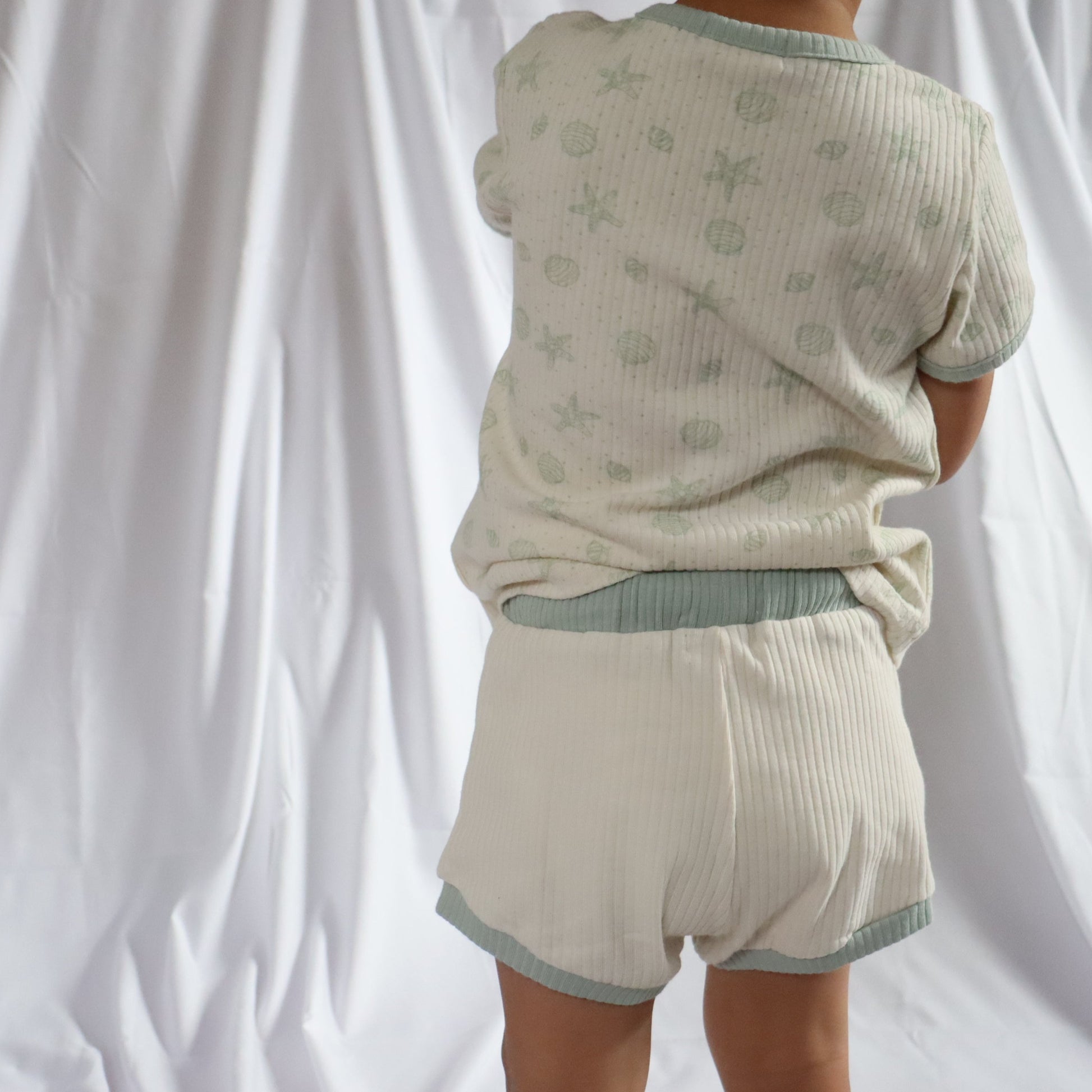 Designed with versatility in mind, each piece can be effortlessly mixed and matched with our Seaside Sage Summer Set — pair the seaside top with coastal cream shorts or the coastal cream top with seaside bottoms for even more adorable summer looks.